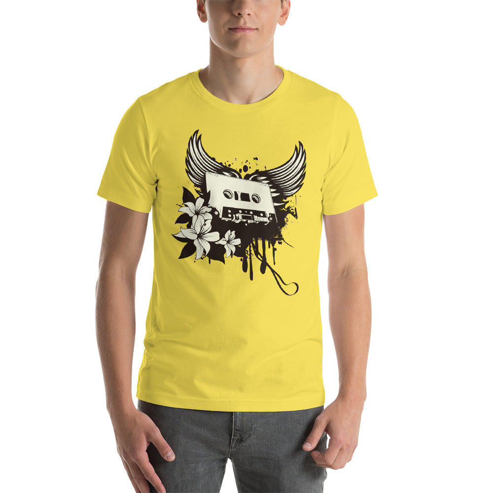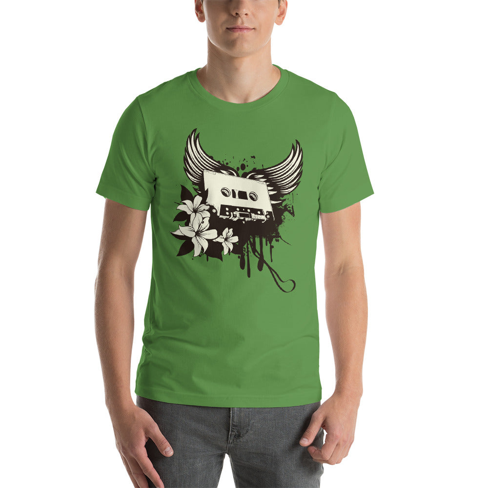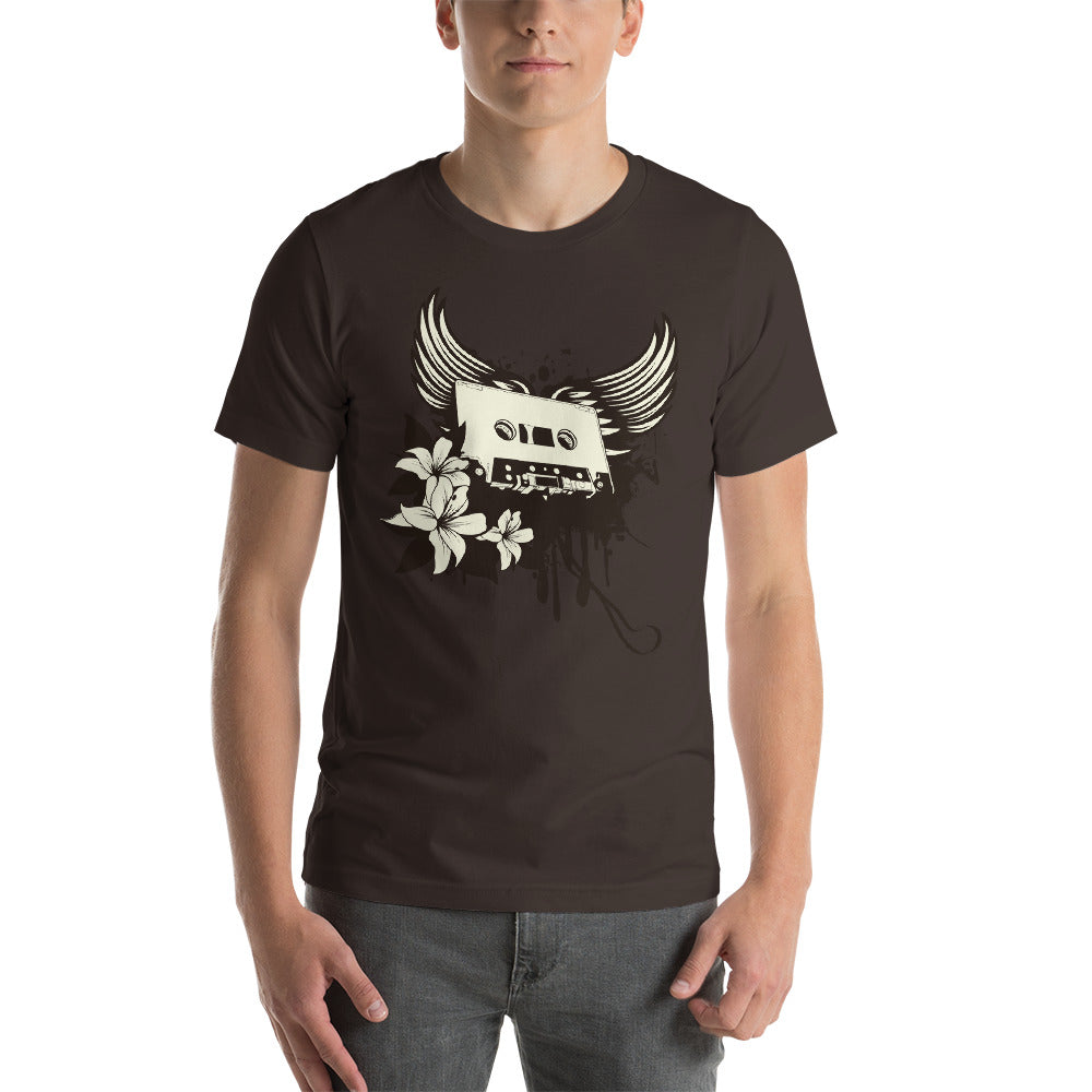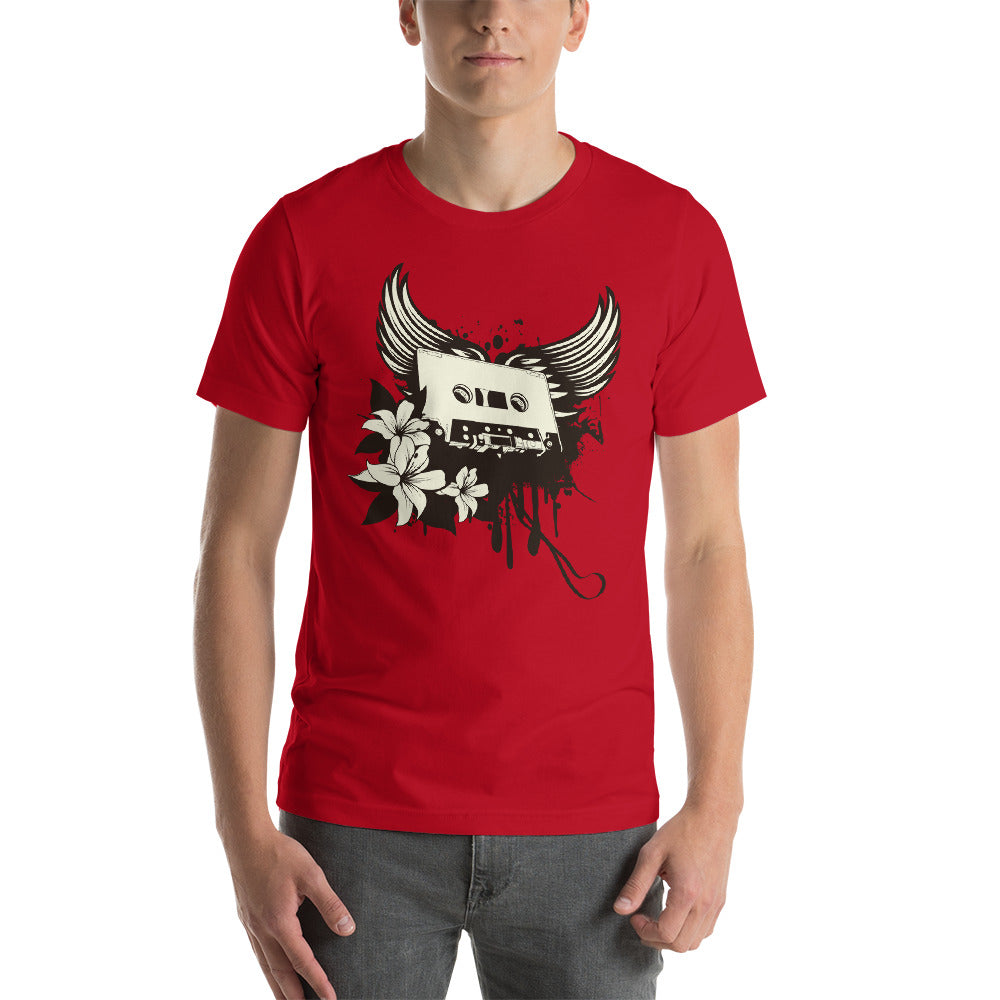 Get ready to take off with our Winged Cassette shirt! It's much more than just clothing; it's a musical wing ready to take you on a nostalgic flight. Picture yourself in the sky, wearing the stylized wings of an audio cassette, ready to soar over the sonic memories of the past.