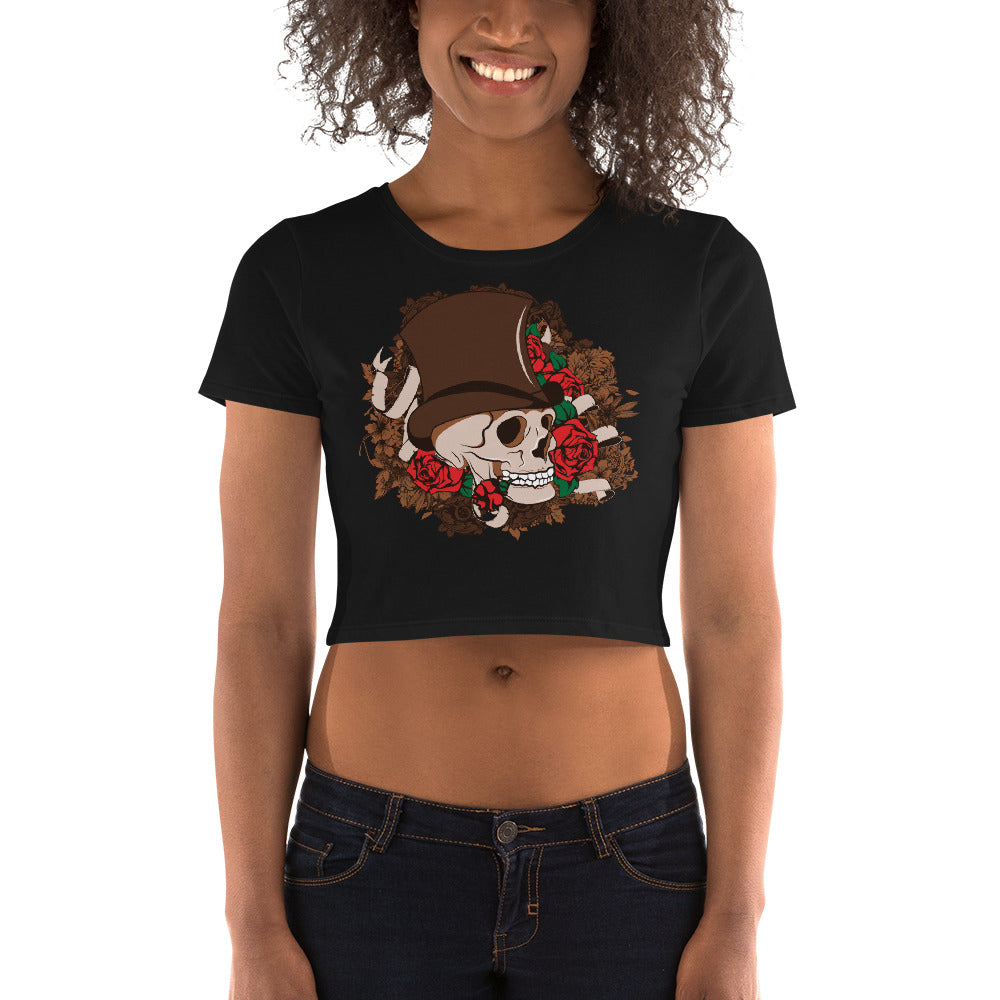 Bowler Hat And Roses Crop Top - Tees Arena | TeesArena.com